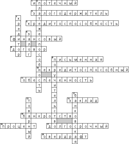 Готовый кроссворд по предмету Денежно-кредитные и финансовые системы (ДКФС) - на тему «Кредит и его формы»