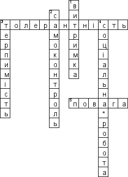 Готовый кроссворд по предмету Деонтологiя (укр.) - на тему «Толерантнiсть як важлива характеристика соцiального працiвника (укр.)»