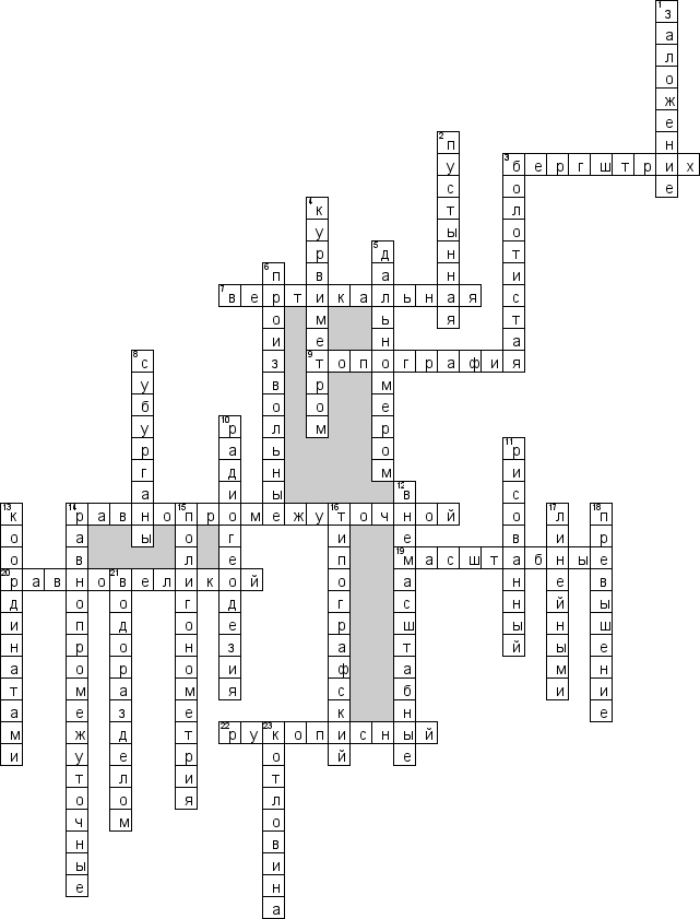 Готовый кроссворд по геодезии - на тему «Топографические карты»
