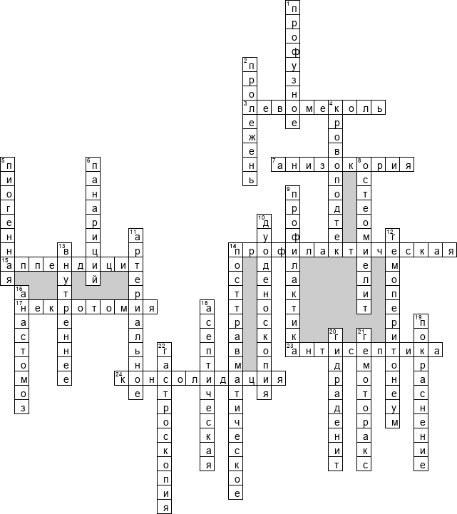 Готовый кроссворд по медицине - на тему «Хирургия»